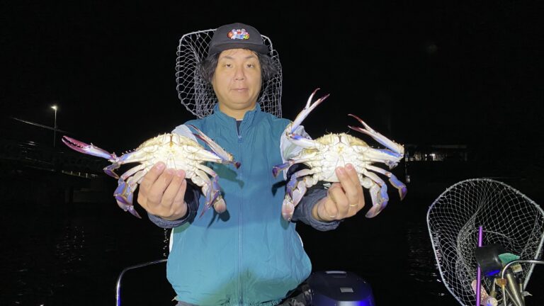 雨に浮かぶ良型蟹 船長コメント ゲスト1名様にて夜の蟹掬い雨に降られる場面もありましたがしっかりと良型を掬って頂きました。 大型ワタリガニ! 雨が降ったり止んだりやりにくい釣行でしたが上手にカニを掬って頂きました。何度も来て頂いており掬うの上手になりました。 10月19日釣果! めちゃくちゃ居るとは言えませんが、蟹のサイズが大きいので満足できる釣果となりました御乗船ありがとうございました ワタリガ […]