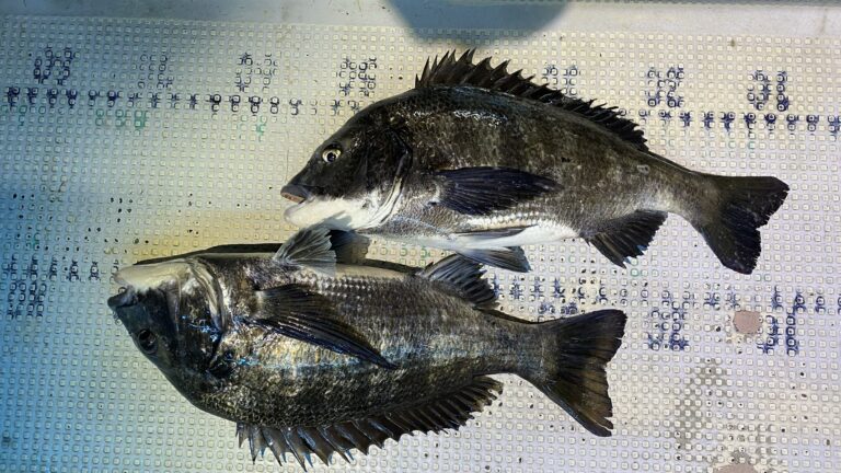 この日はナイトのクロダイキャスティング便で出船。風も弱く、夜の雰囲気は良好。潮も程よく効いていて、いかにも釣れそうな状況でした。ポイントに入ると、ボトム付近に反応あり。ただし簡単には口を使わず、しっかりコースとレンジを通さないと食わないテクニカルな展開。アタリはあるものの乗らない場面もあり、丁寧な操作が求められる一日でした。